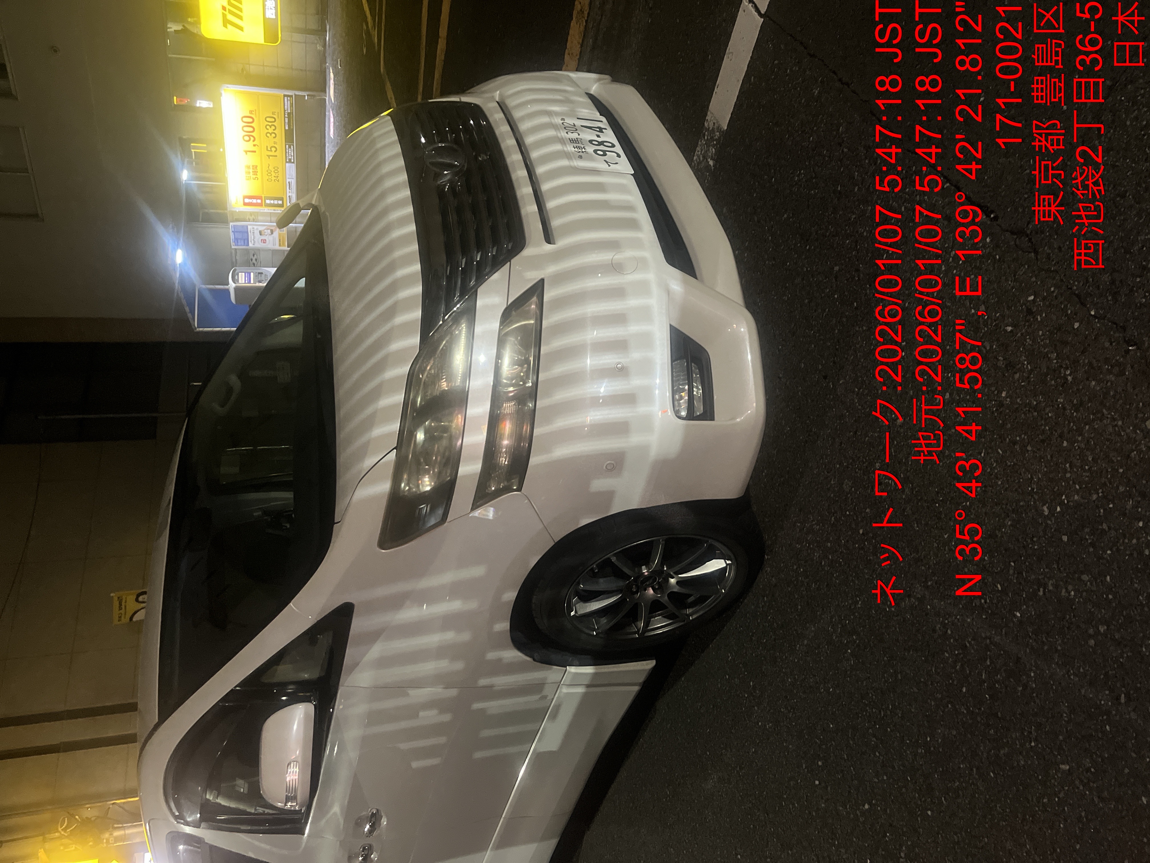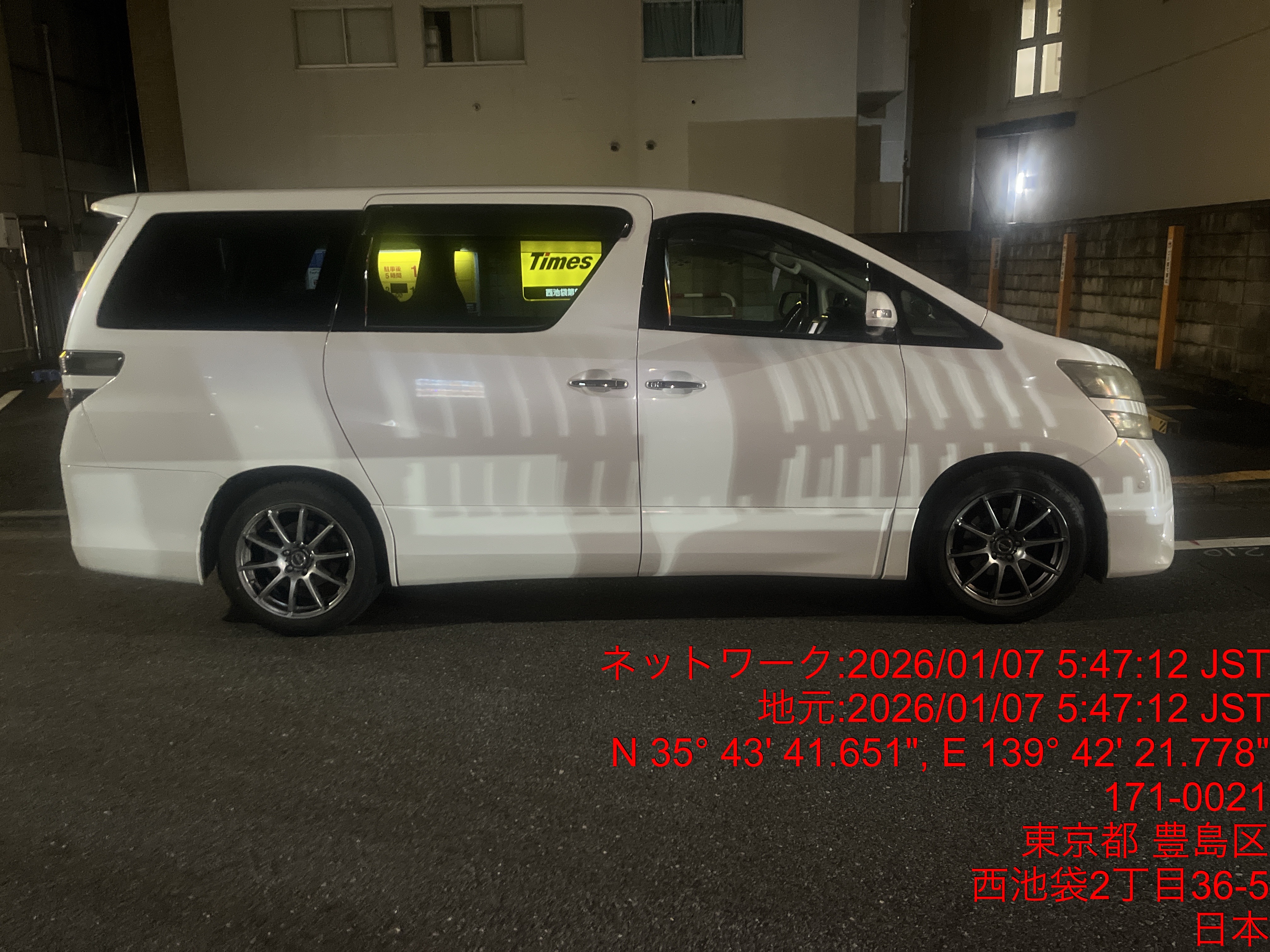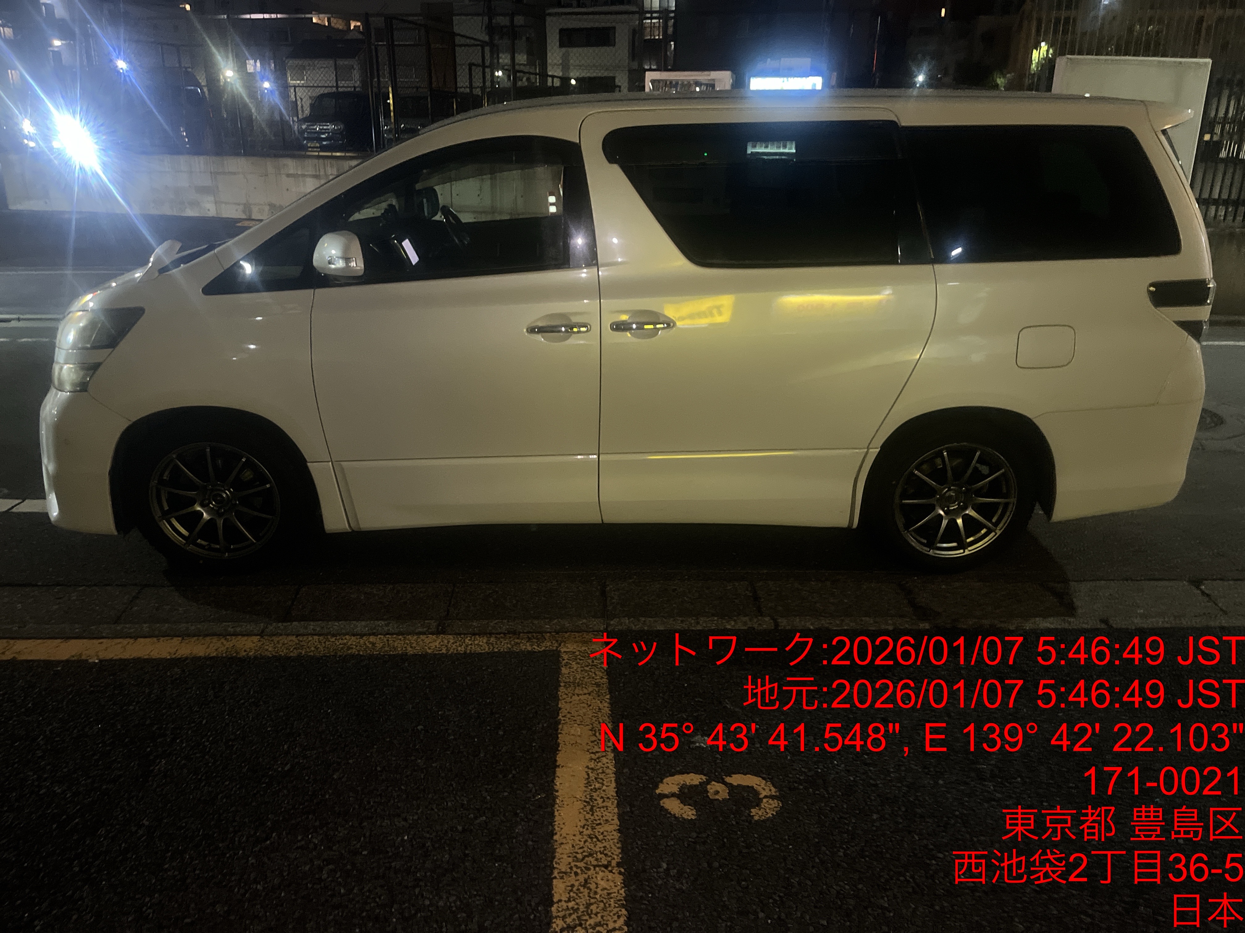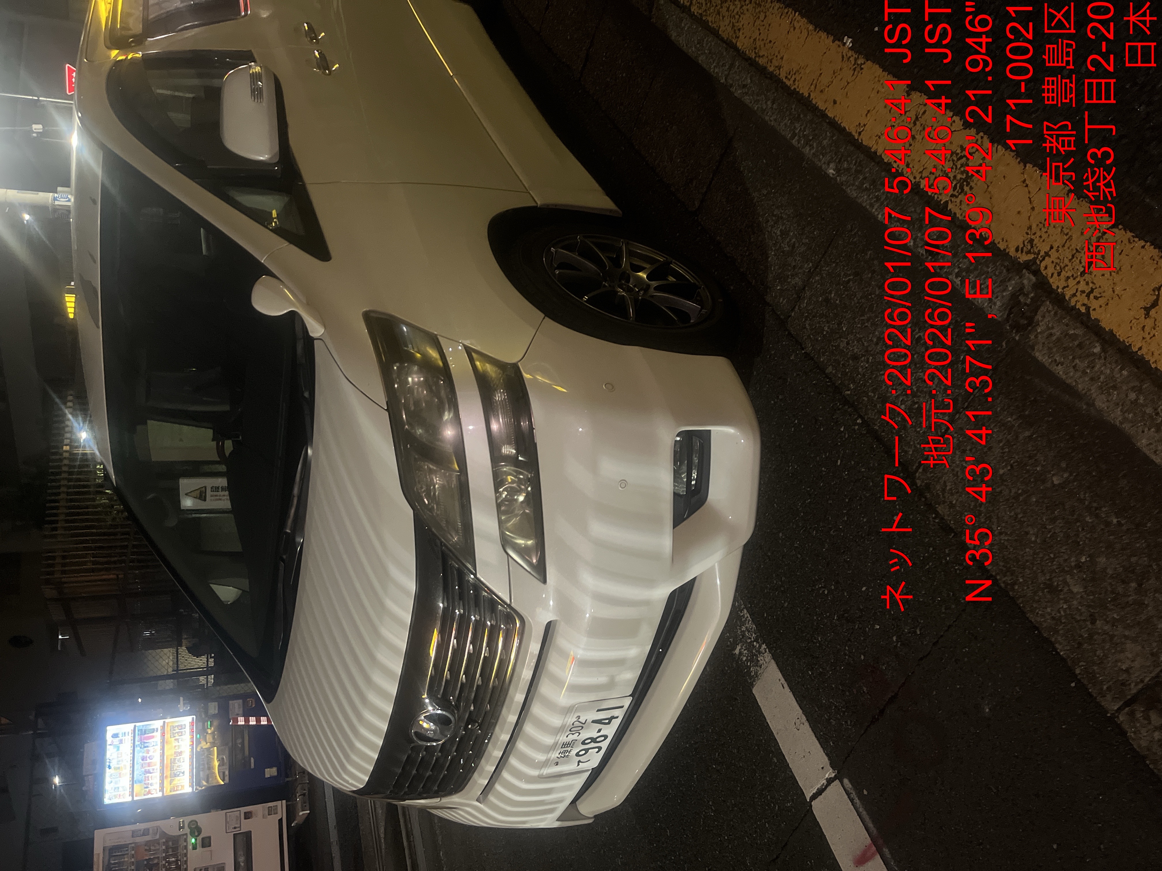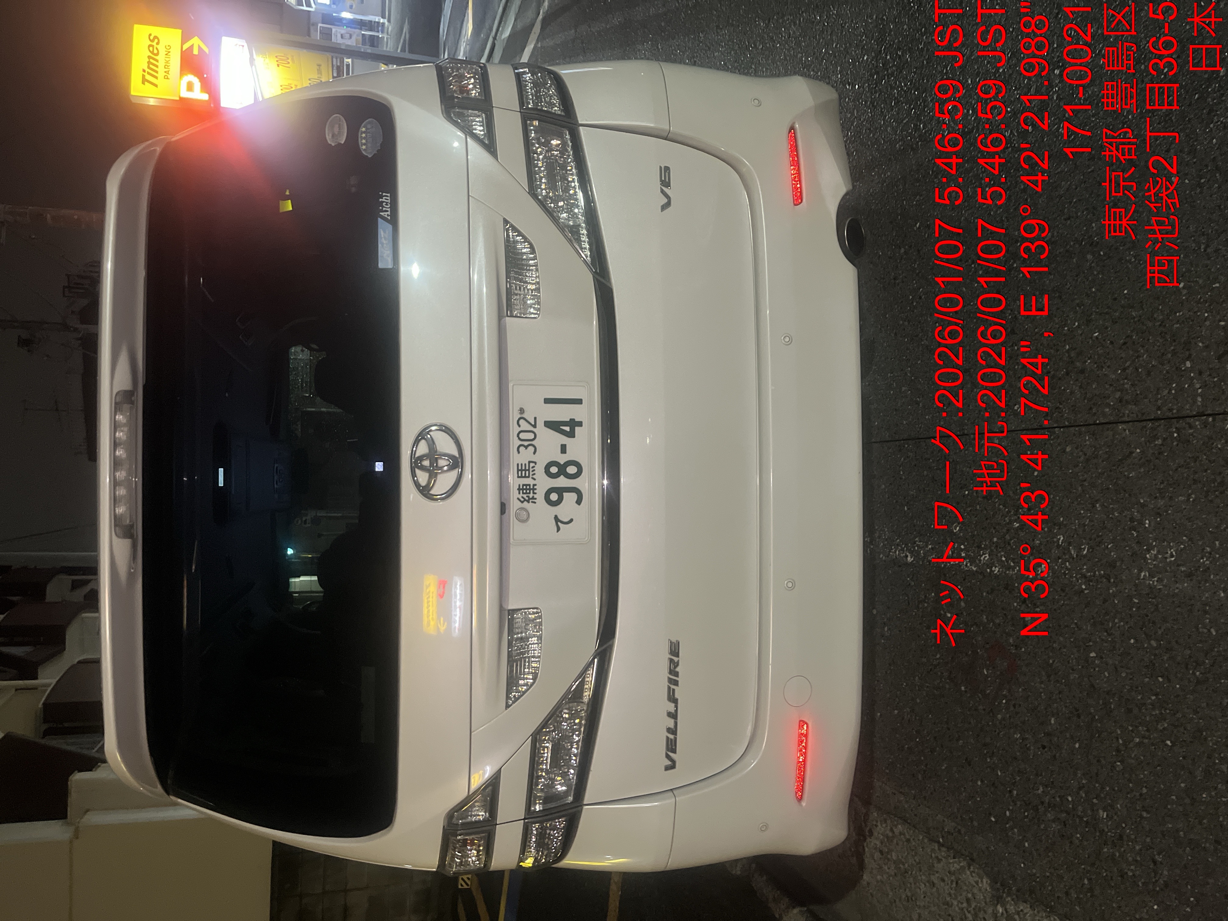 9841 ヴェルファイア白(池袋) 入庫 1/7 05:51 田中大地
