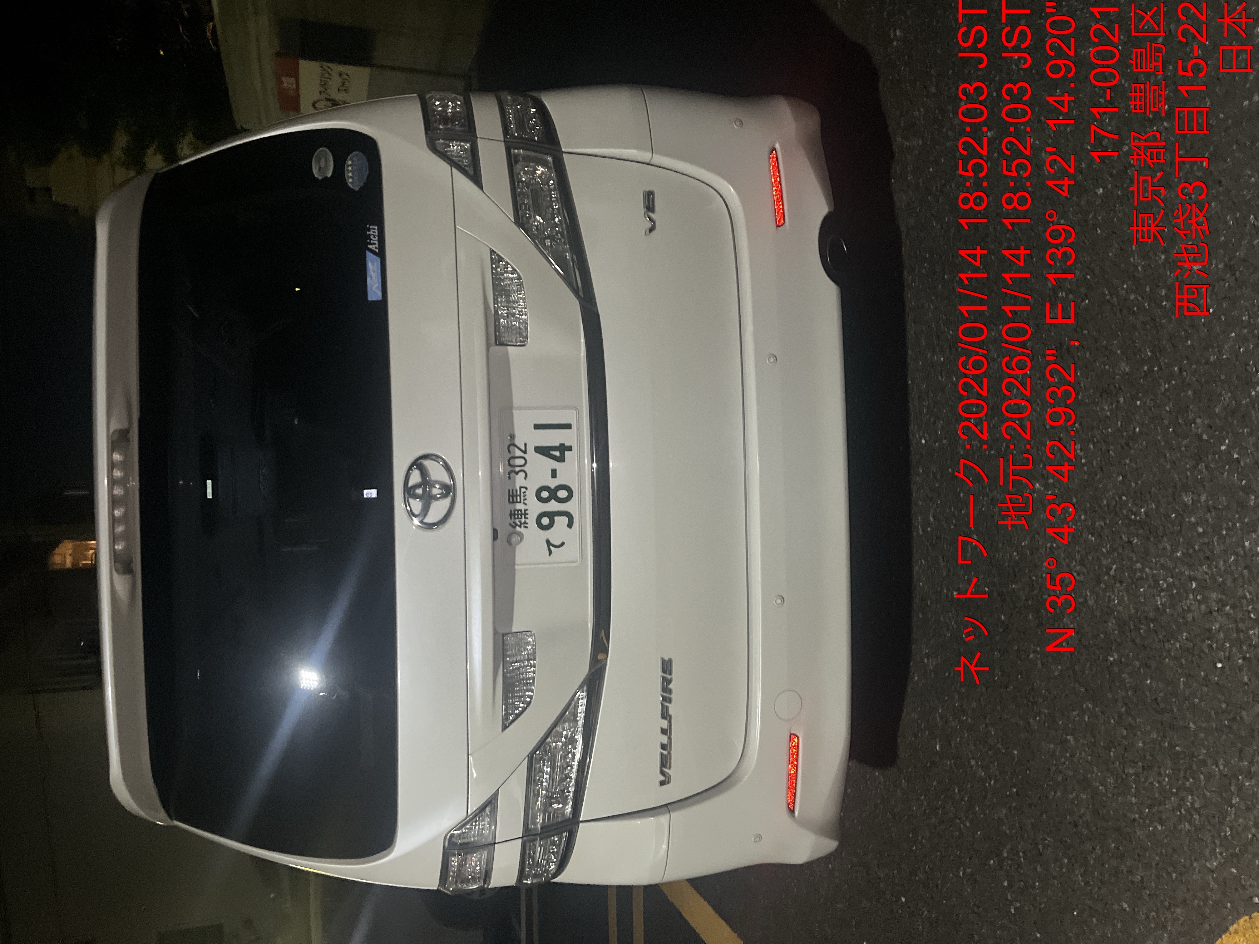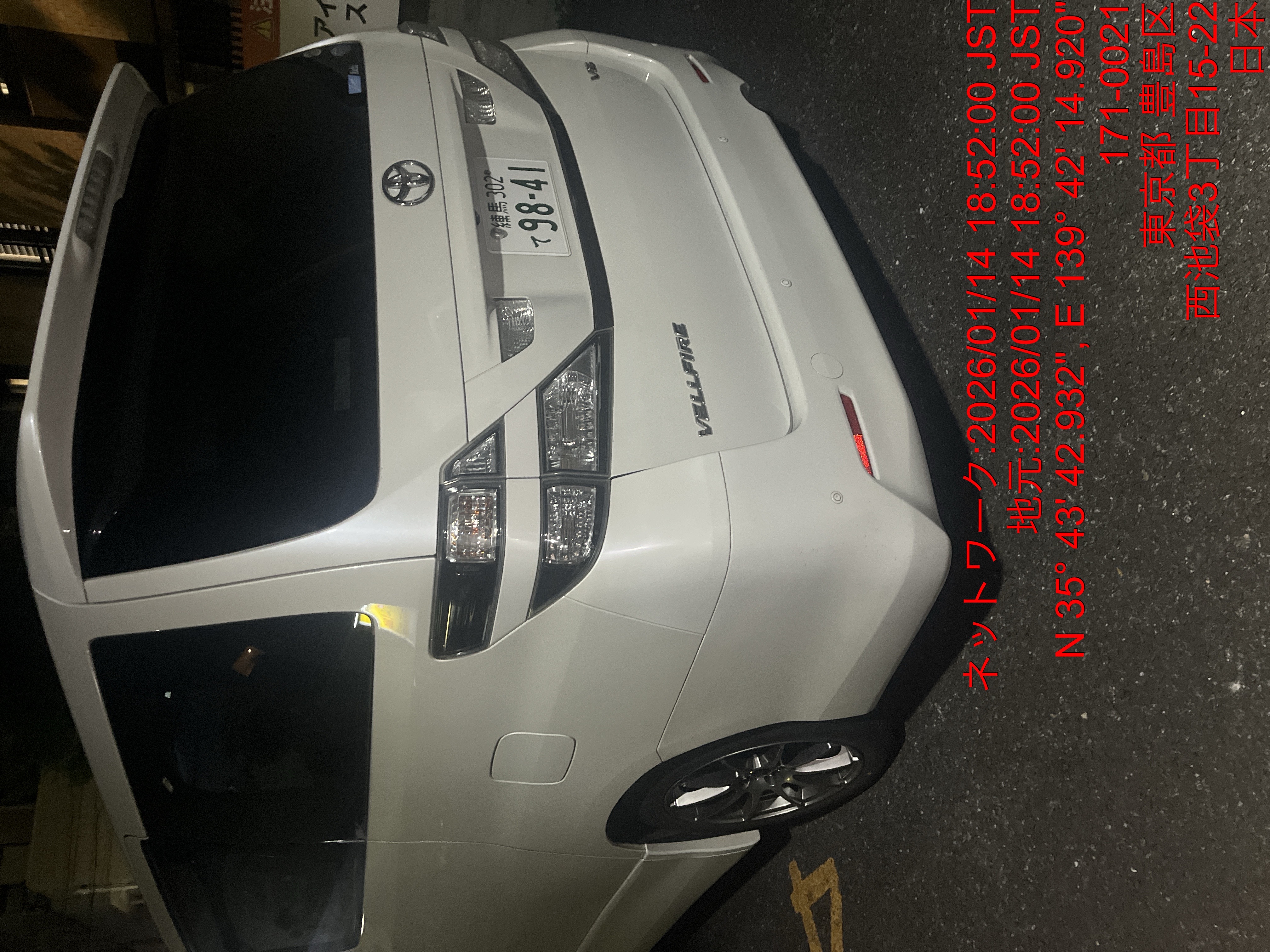 9841 ヴェルファイア白(池袋) 出庫 1/14 18:51 田中大地