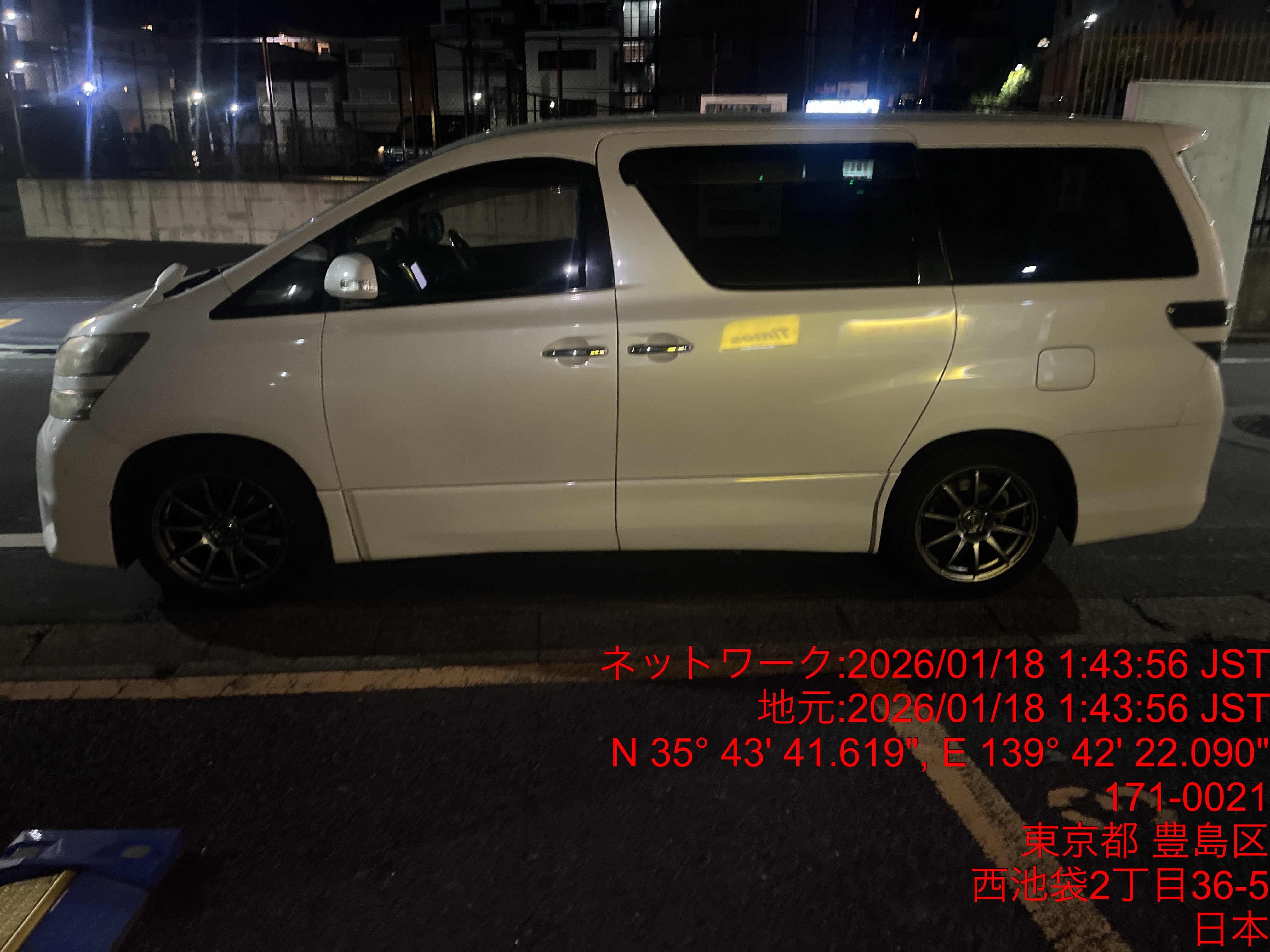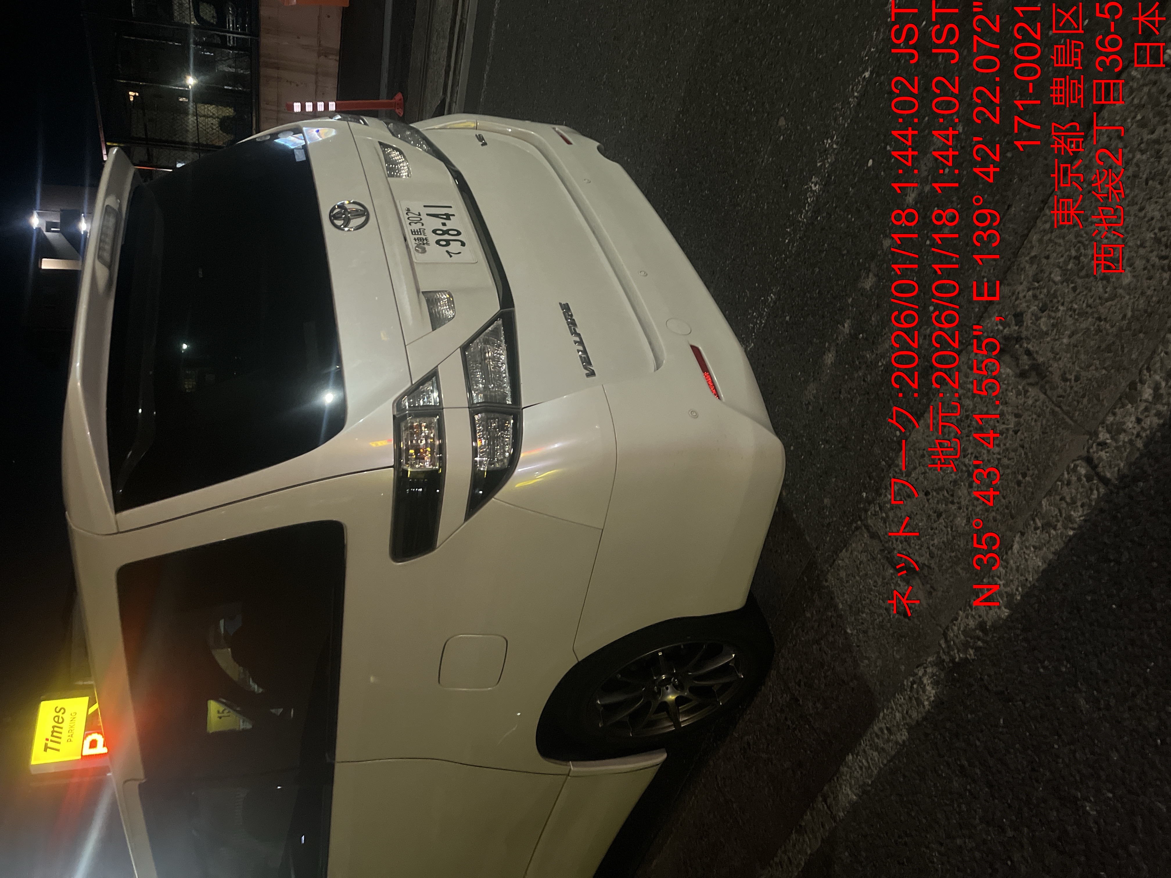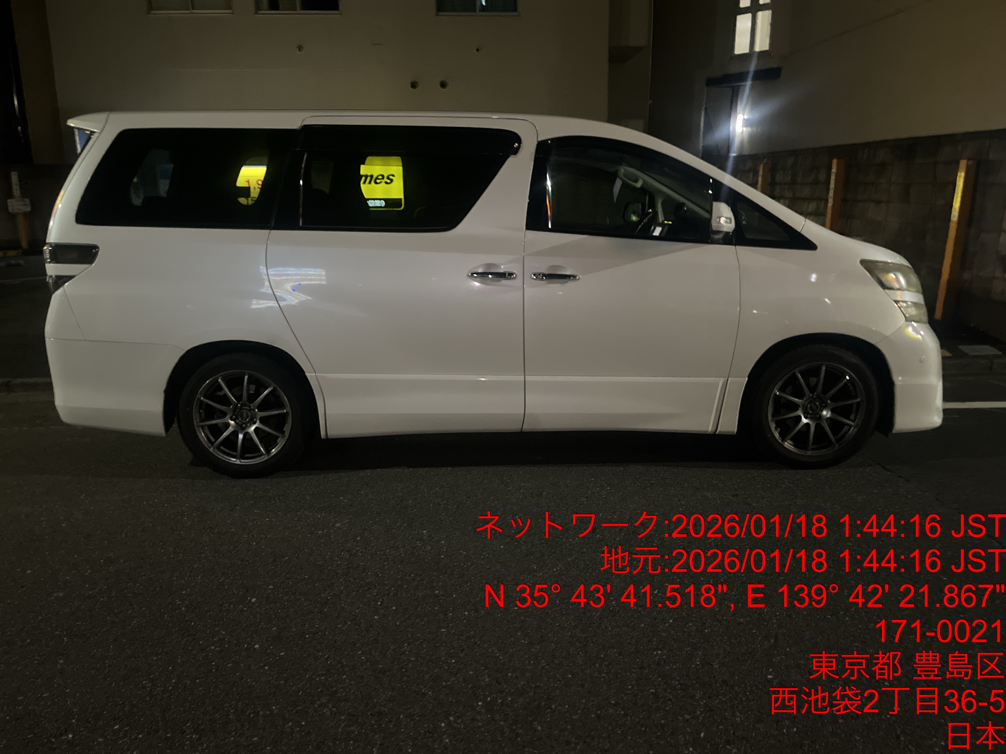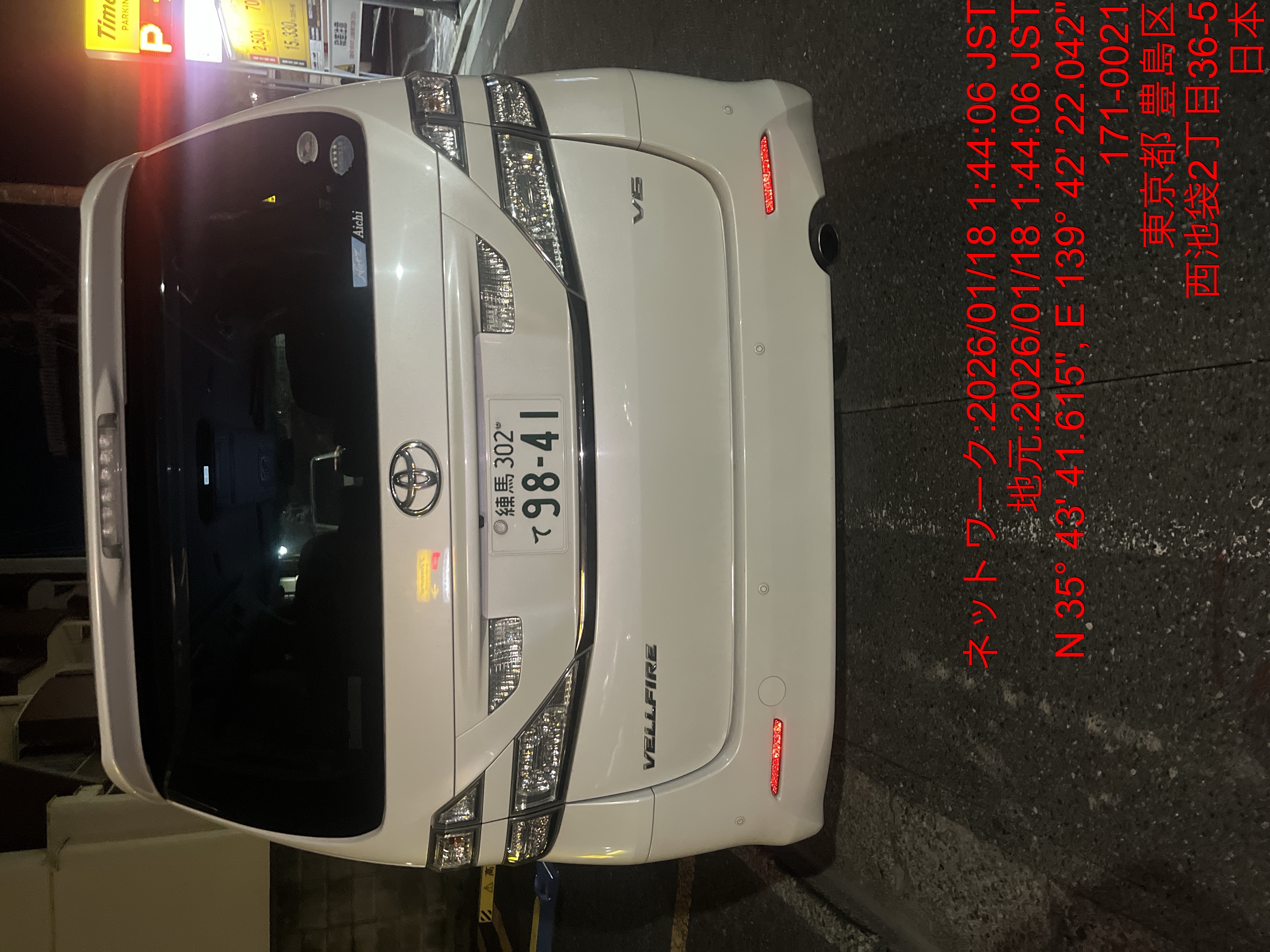 9841 ヴェルファイア白(池袋) 入庫 1/18 01:48 田中大地