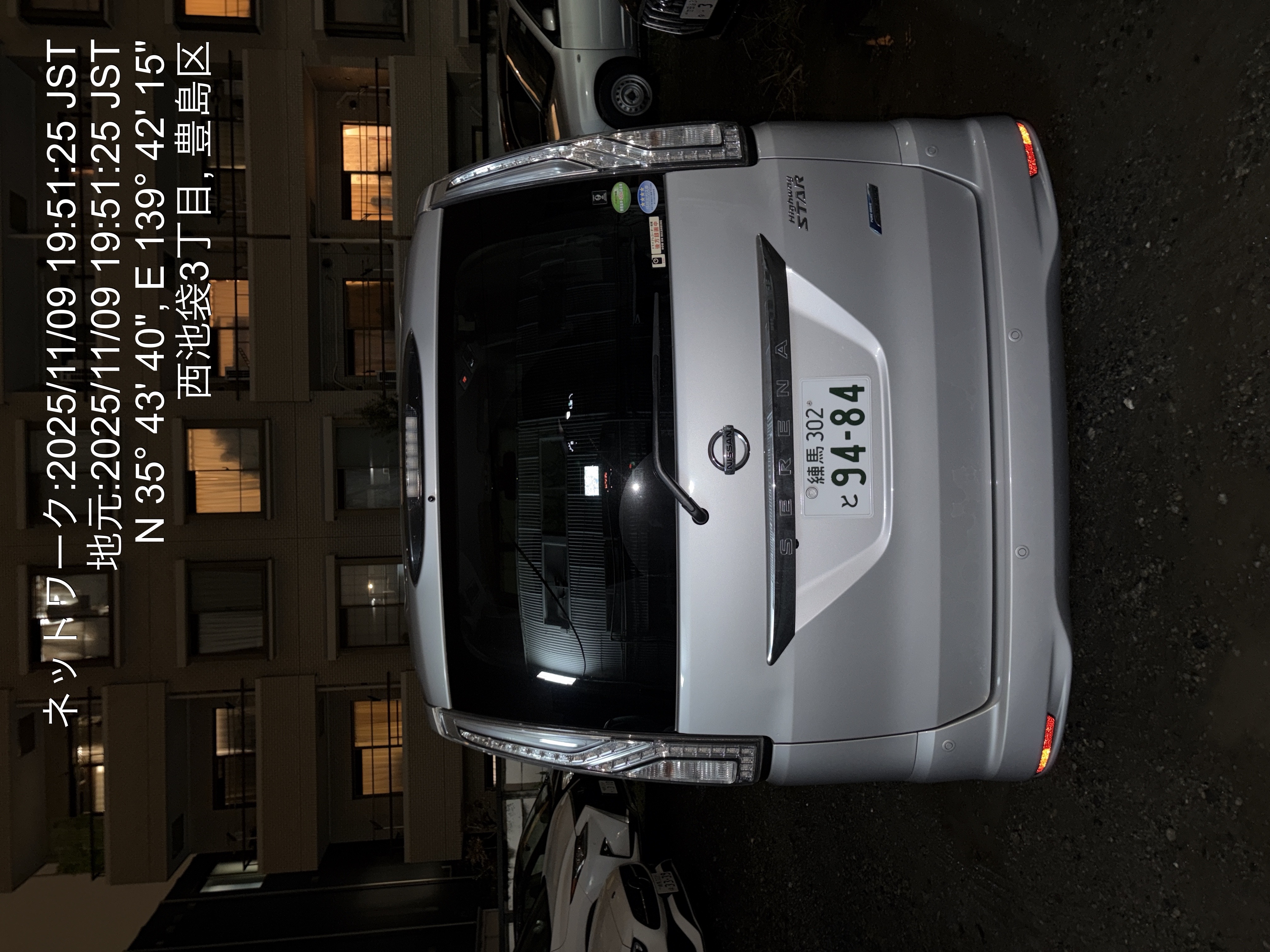 9484 セレナ(池袋清掃送迎班) 入庫 11/9 19:54 小林清二