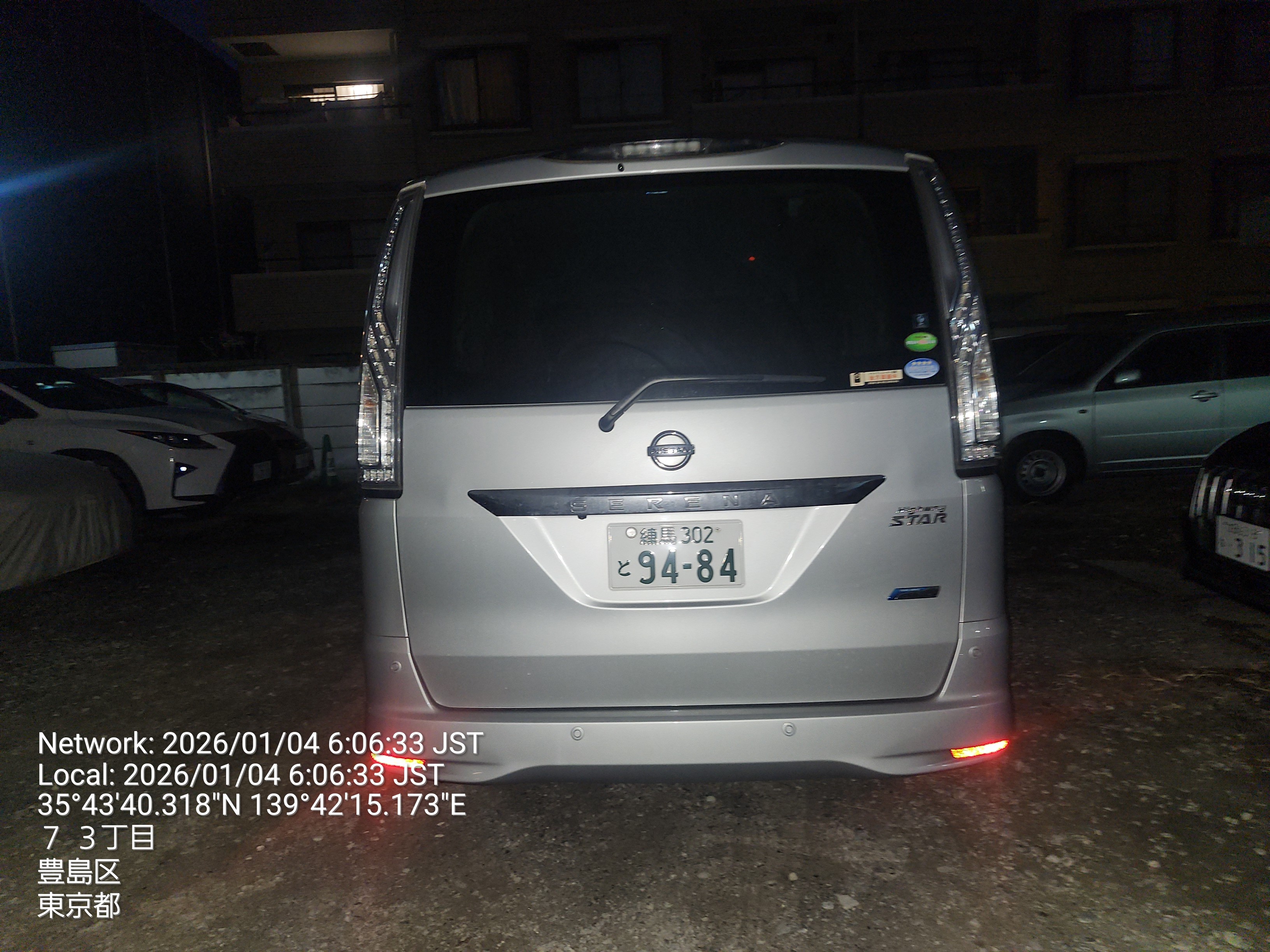 9484 セレナ(池袋清掃送迎班) 入庫 1/4 6時00分 髙橋康弘