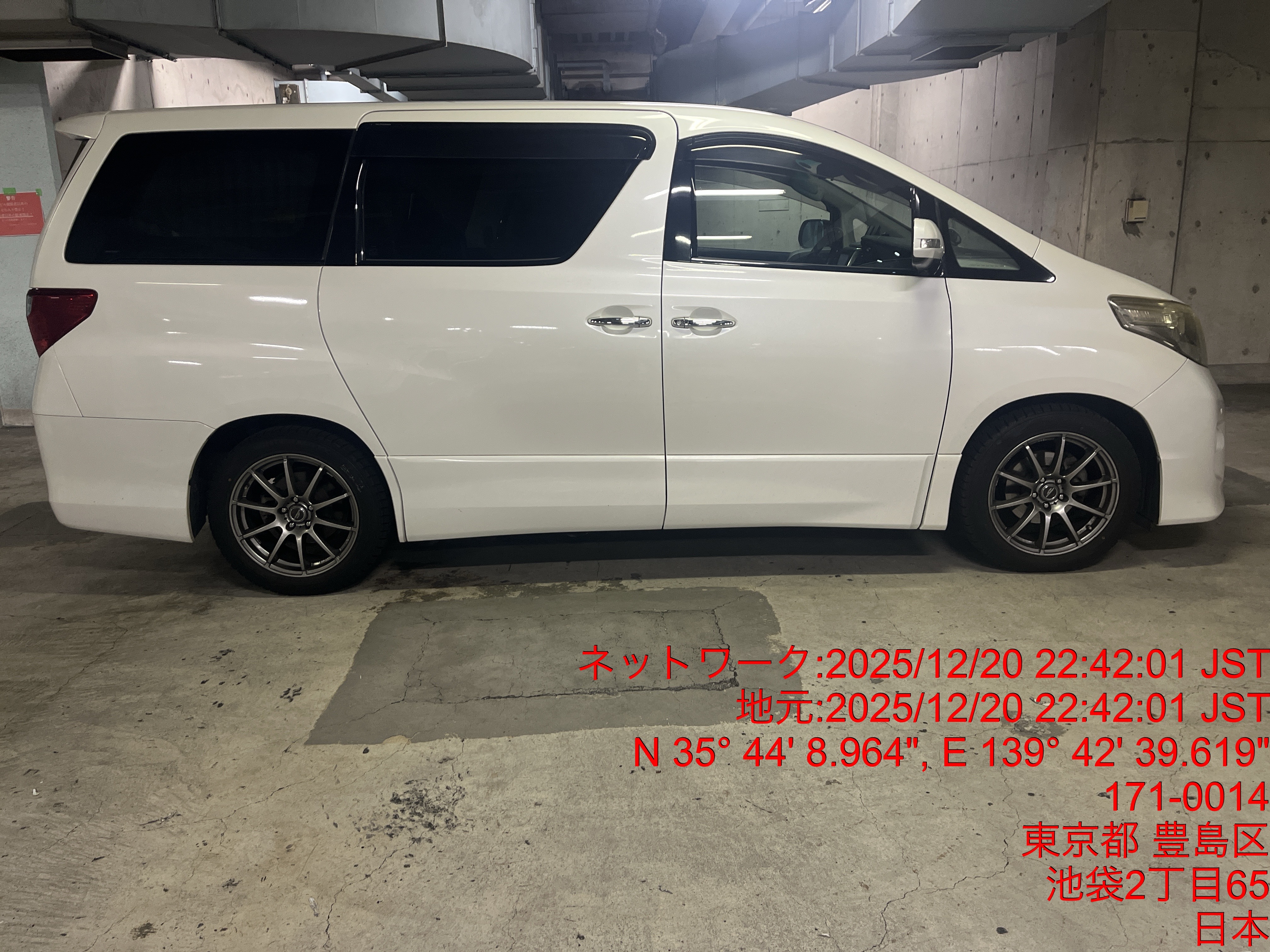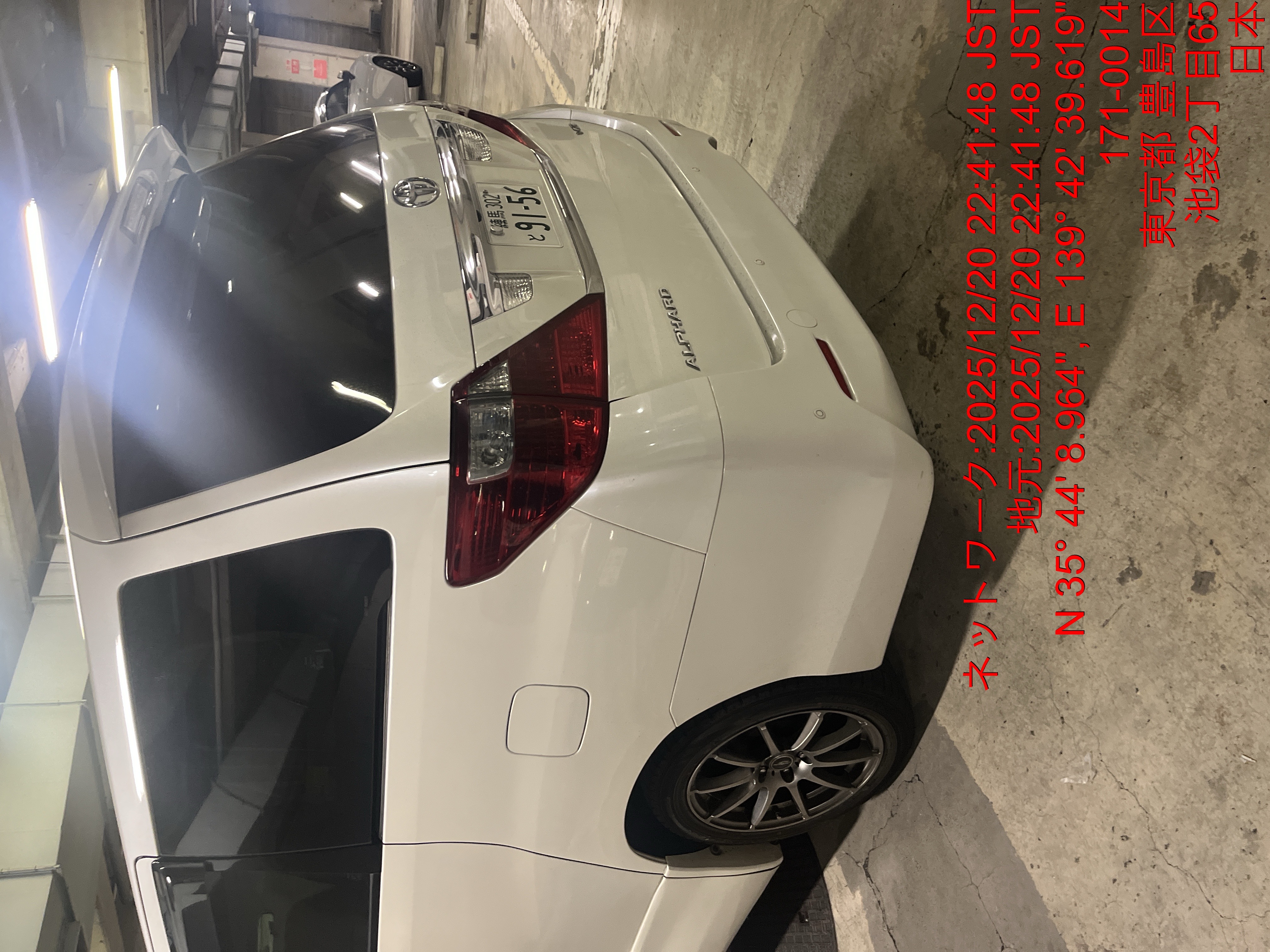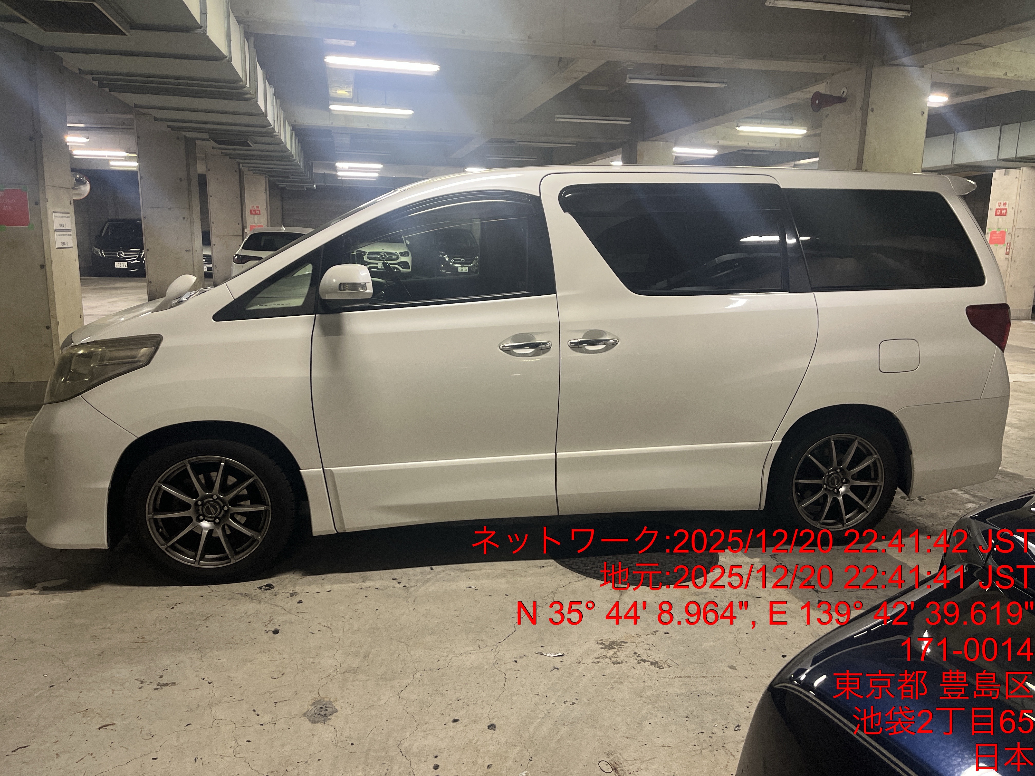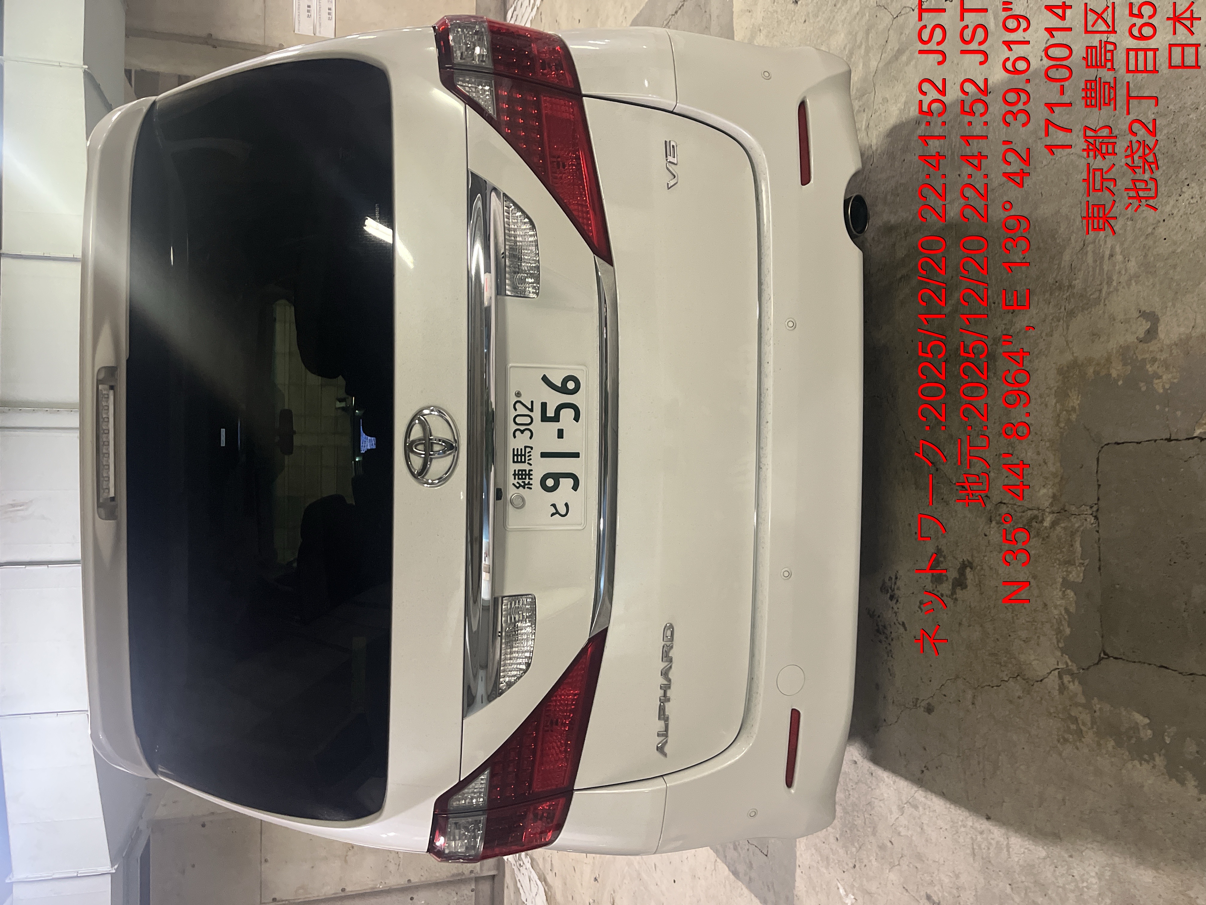9156 アルファード(社長車) 出庫 12/20 22:42 田中大地