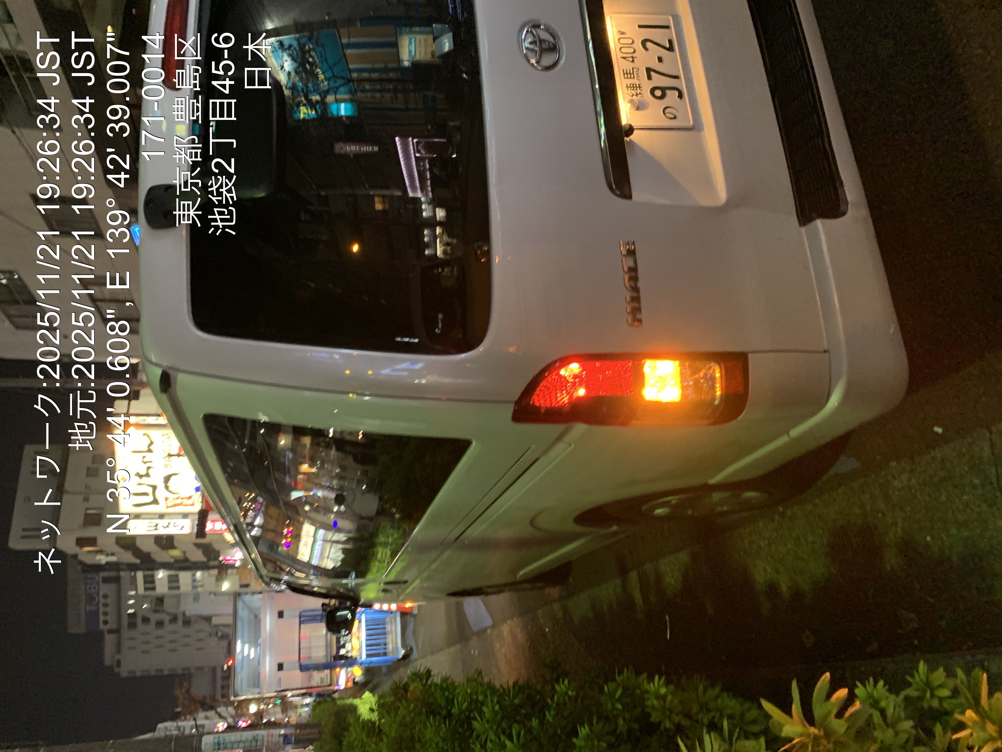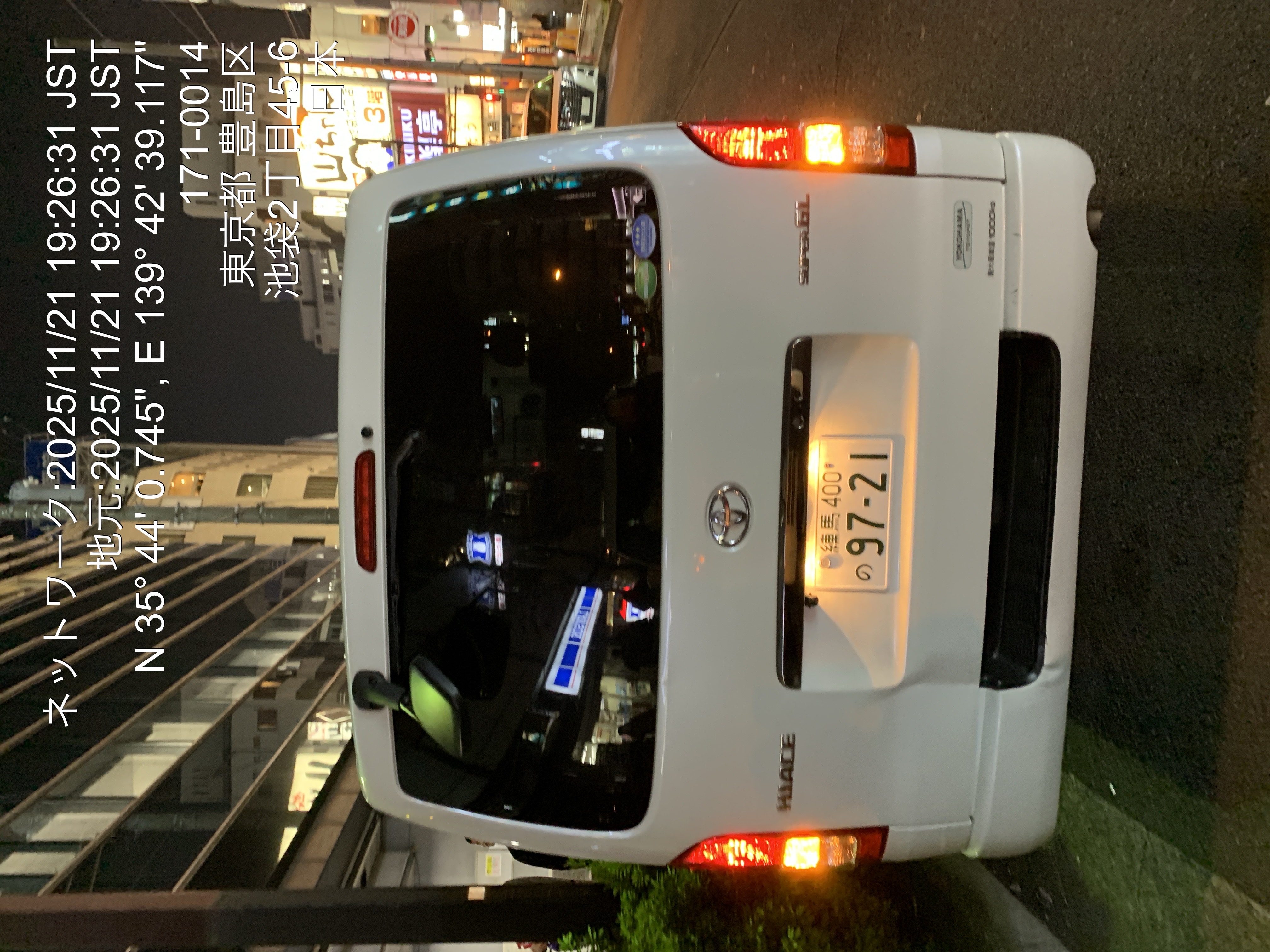 9721 ハイエース(池袋) 入庫 11/21 19:40 岩崎剛士